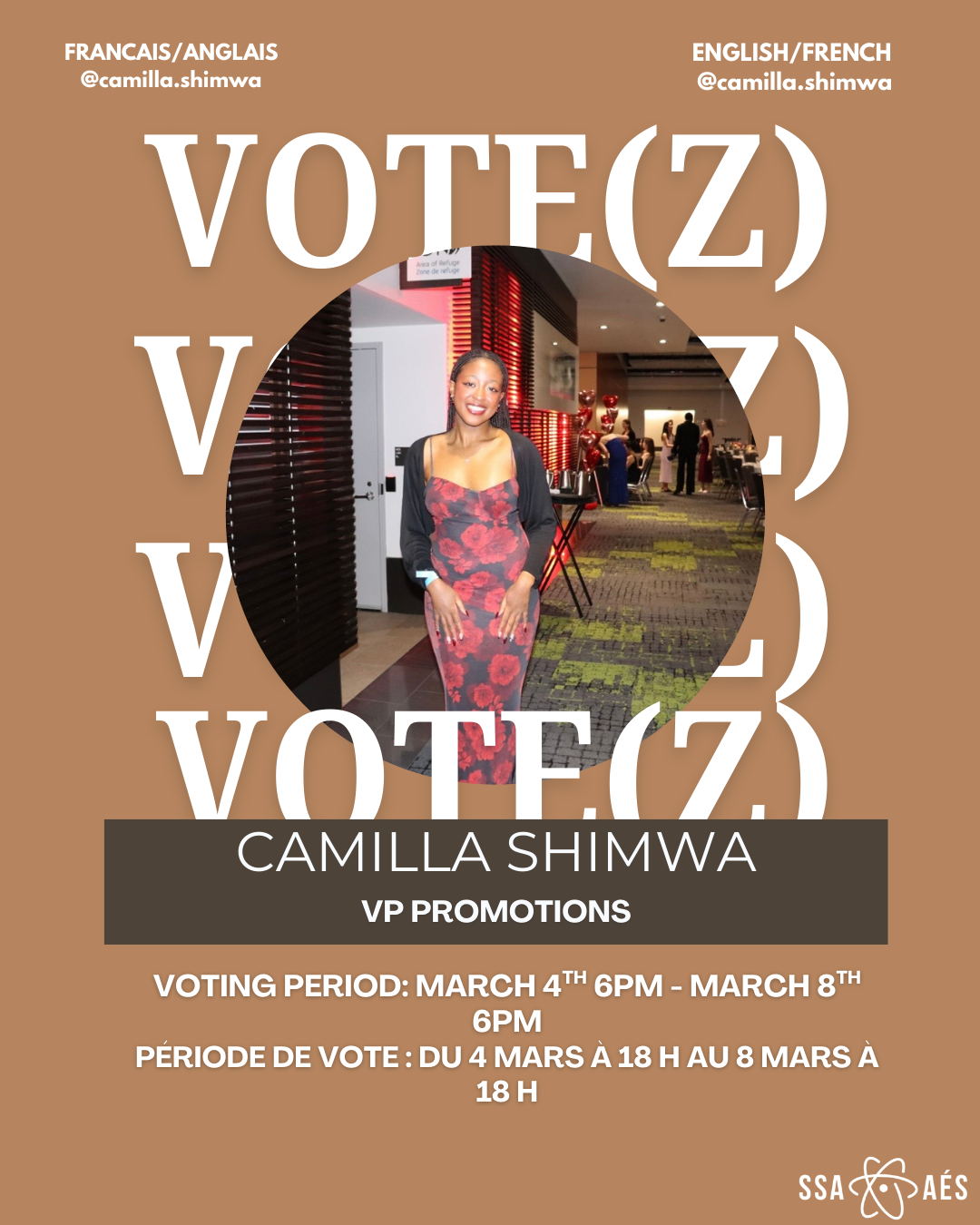 I would love the opportunity to represent you and provide the high-quality content our science community deserves. Vote Camilla Shimwa for VP Promotions 2026-27!